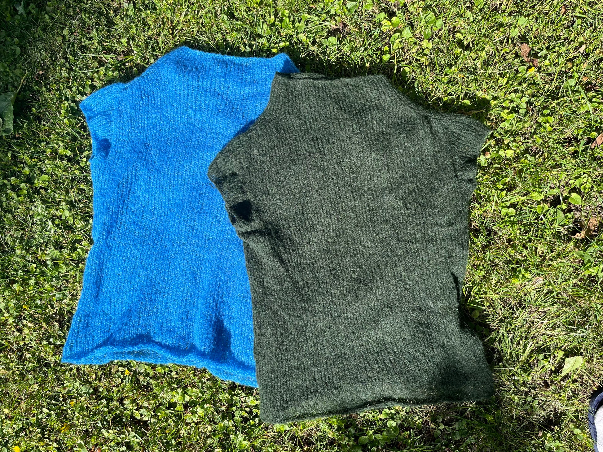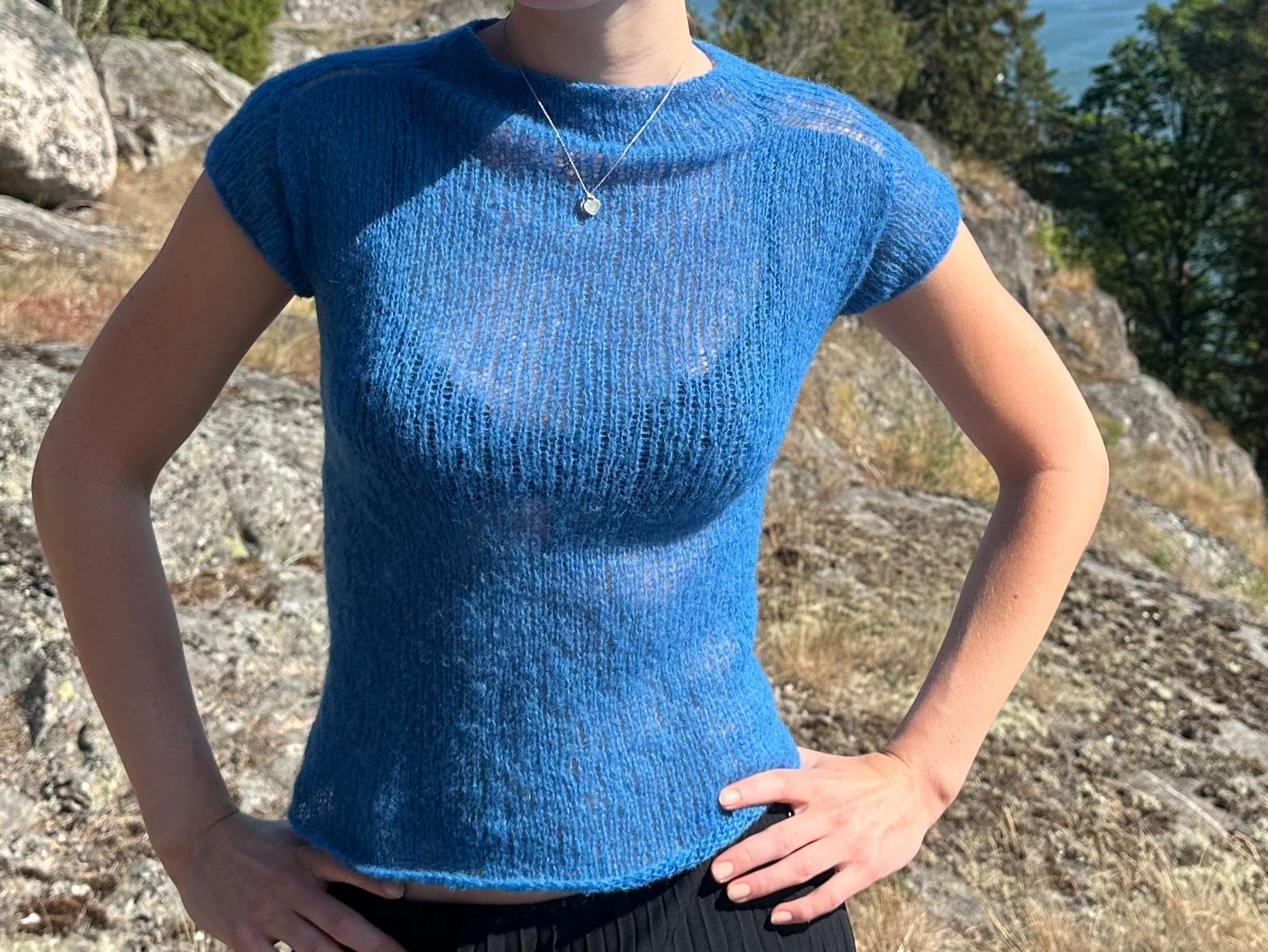 (XS) S (M) L (XL) XXL Övervidd cm: (81) 86 (91) 95 (100) 110 Längd cm (från axel): (46) 48 (50) 53 (55) 57 Garn: (2) 2 (2) 3 (3) 4 nystan Baby Mohair Silk från Miss Svensson. Stickor: 6 mm rundsticka 40 och 60 eller 80 cm. Masktäthet: 15 m x 21 varv i slätstickning med enkel tråd på stickor 6 mm = 10 x 10 cm Tvättråd: Handtvätt 30°C. Plantorkas. Tekniker (se videos nedan): Öka vänster och höger från rätsidan, Lägga upp öglemaskor, Förkortade varv (German Short Rows)