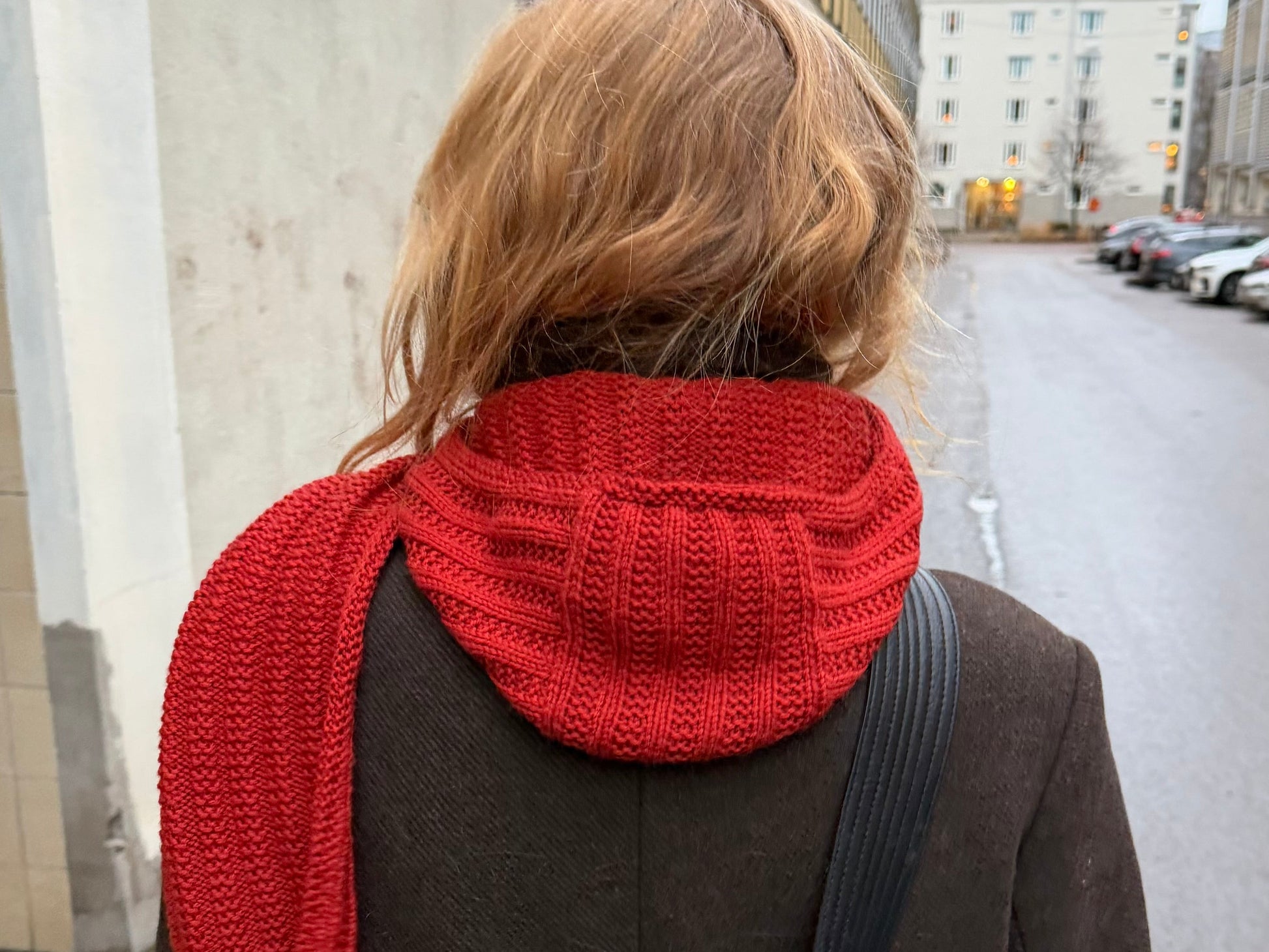 Bianca är en kombination av mössa och halsduk - eller balaklava. En rektangel stickas och maskor plockas sedan upp på var sida så att huvudet formas. När mössan är stickad, delas arbetet upp så att halsduken stockas på var sida om mössan. Avslutningsvis stickas en dekorkant runt hela arbetet.